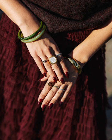 Ring Square White Stone Gold is een stijlvolle en moderne ring met een vierkante witte steen op een gouden basis. Het strakke, verfijnde design geeft een luxe uitstraling en voegt een subtiel, elegant accent toe aan elke look — perfect om solo te dragen of te combineren met andere ringen voor een stijlvolle stacked look.