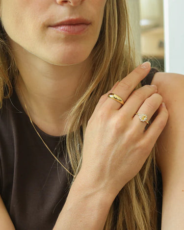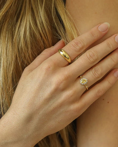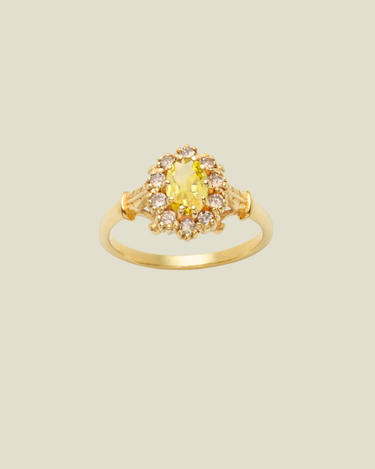 Prachtige gold plated ring met een bloem van champagne en gele zirconia van Josephina Jewelry.