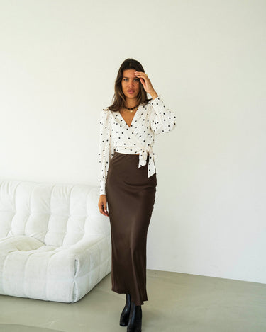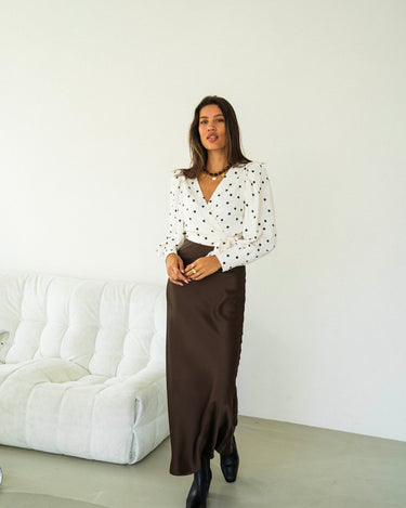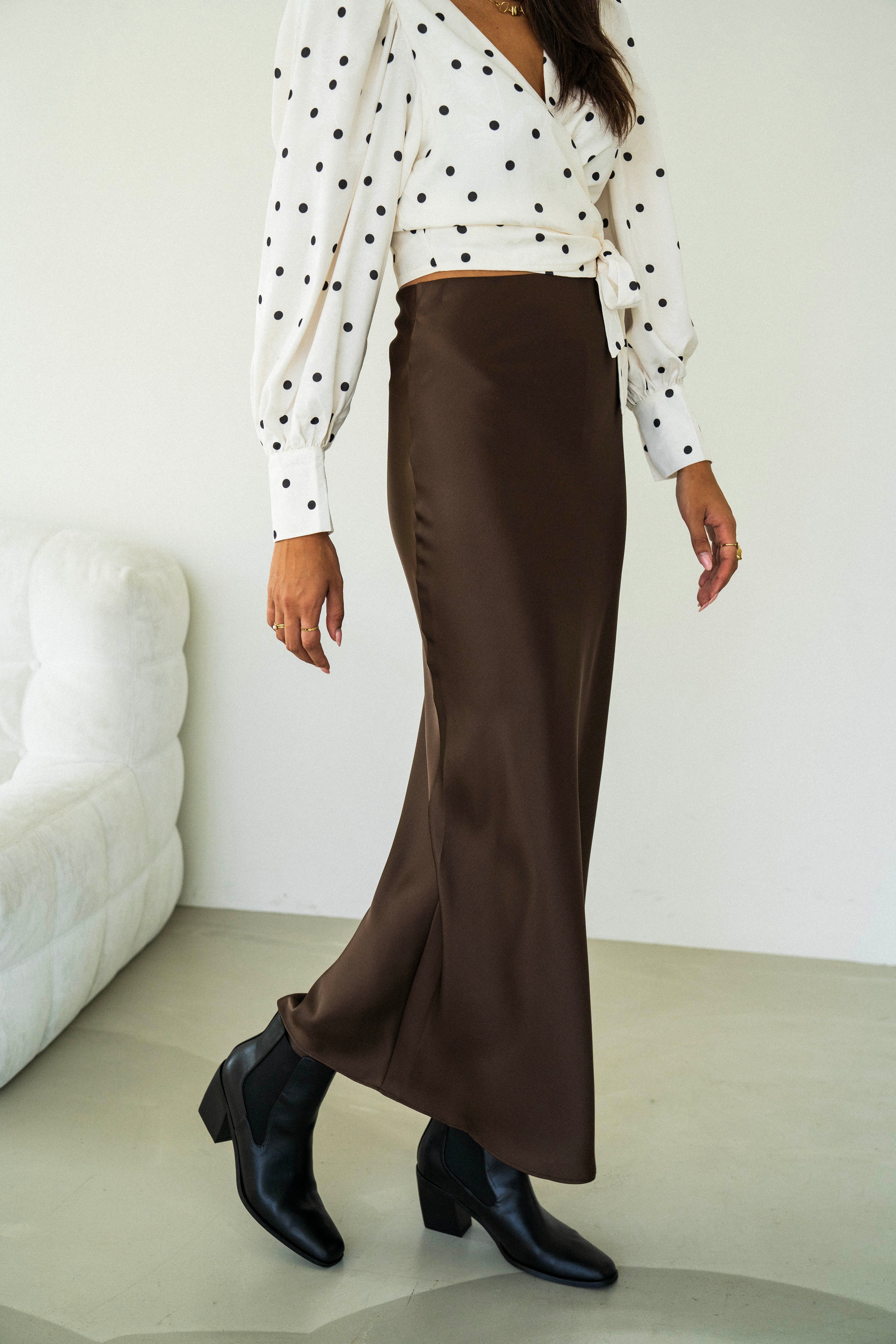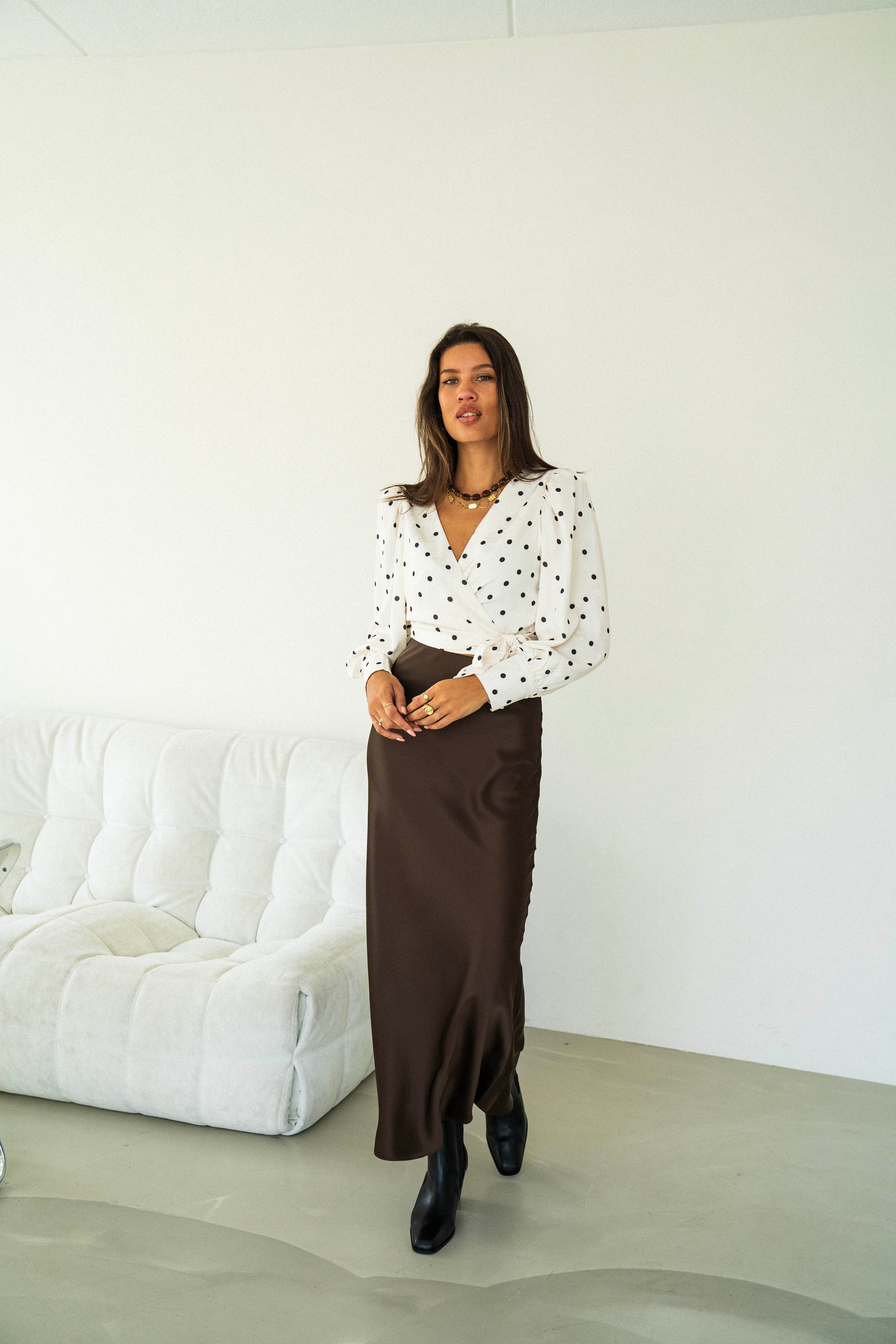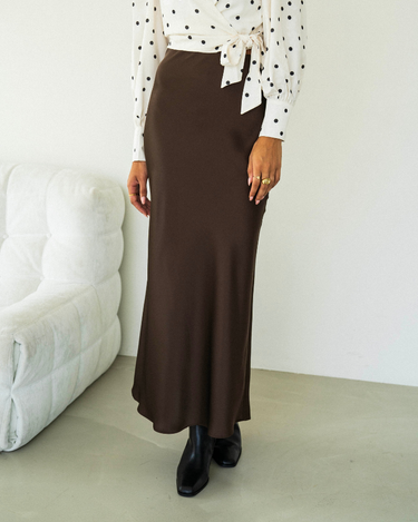 Lange, satijnen rok in een mooie trend kleur en heel mooi lang. De gladde, soepele stof draagt lekker en is kreukvrij.