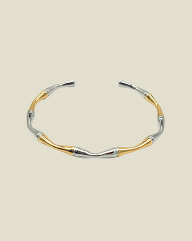 De Bracelet Cuff Bamboo Duo is een stijlvolle armband met een verfijnd bamboe-inspiratie design. Het subtiele en elegante patroon geeft iedere outfit een moderne en speelse touch, geschikt voor zowel dagelijks gebruik als speciale gelegenheden.