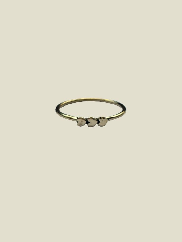 Ring Triple Tiny Heart Gold. Drie minuscule hartjes vormen samen één statement op deze delicate goudkleurige ring. Perfect voor wie subtiele elegantie combineert met een vleugje romantiek.