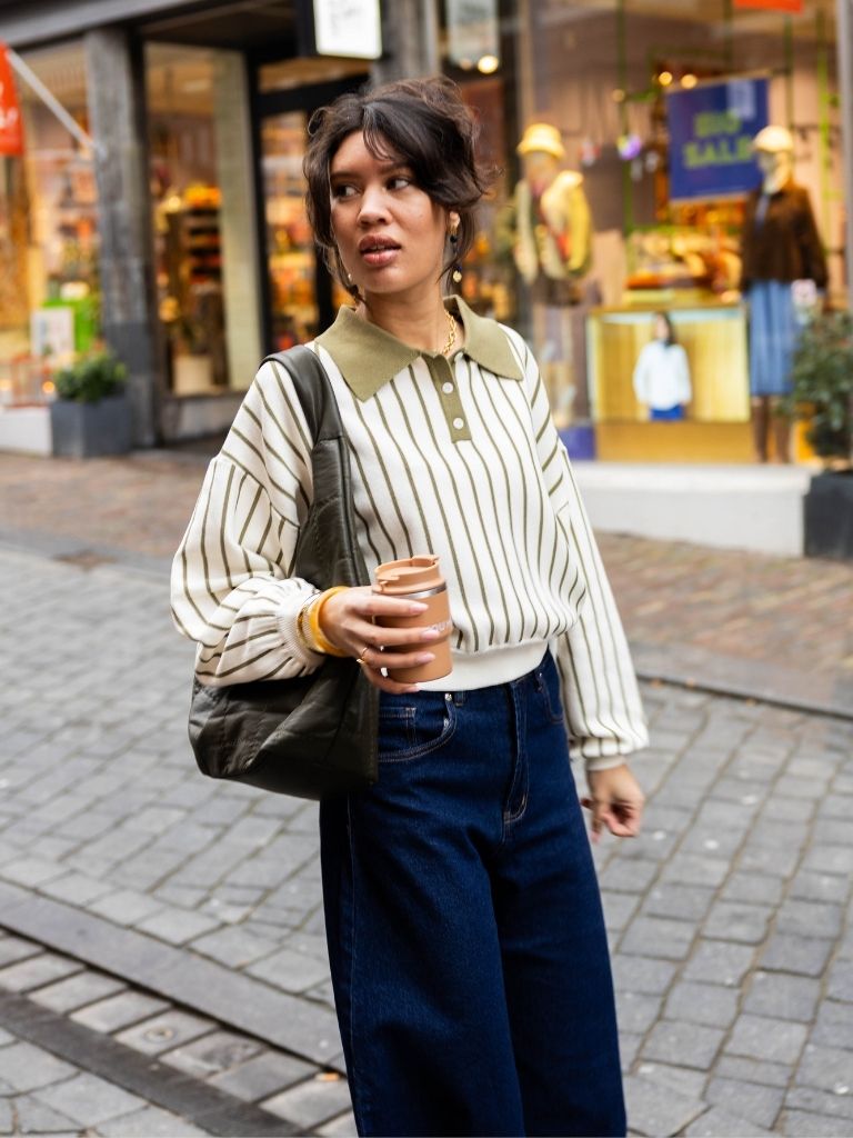 De Polo Cressida Olive is een stijlvolle en comfortabele polo met een frisse uitstraling. Het streeppatroon in olive tinten geeft een rustige en moderne look, terwijl het kraagje zorgt voor een nette en vrouwelijke touch. Gemaakt van 100 procent viscose, waardoor de polo soepel valt en prettig aanvoelt op de huid. Perfect voor elke dag en makkelijk te combineren met een jeans, rok of pantalon.