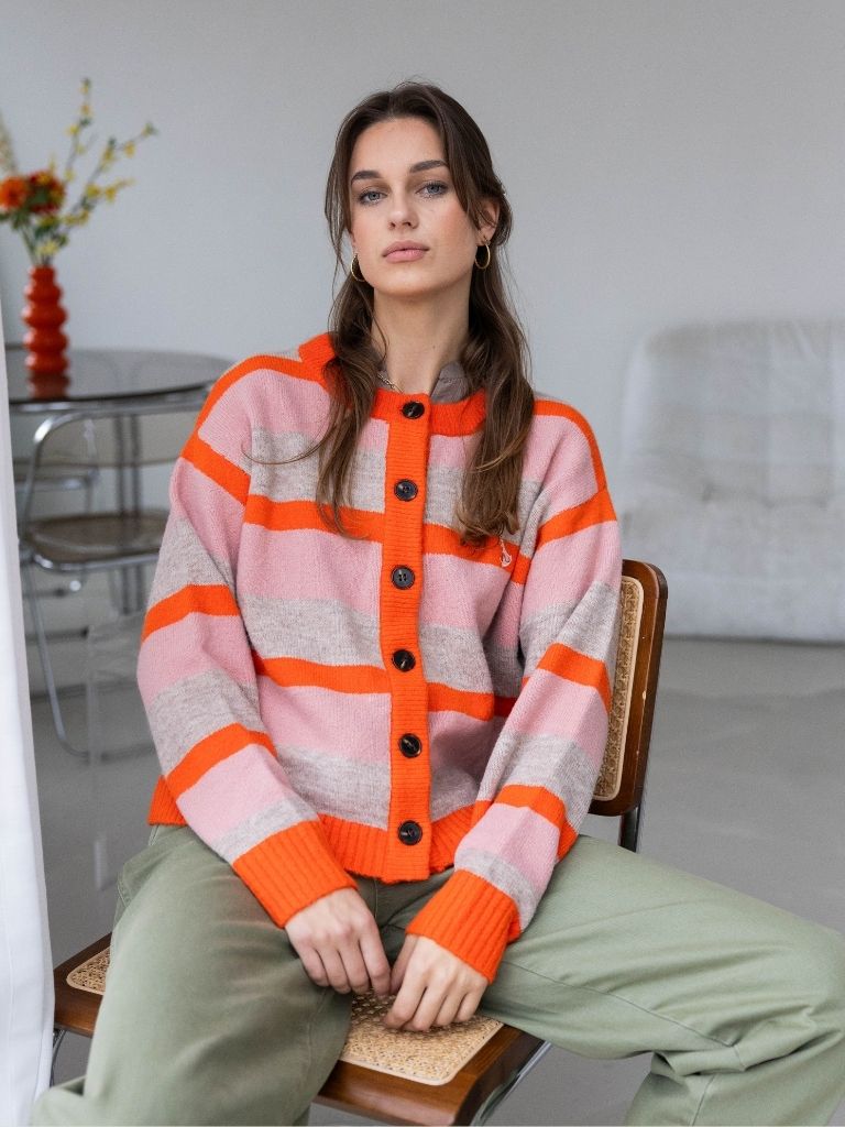 • Vrolijke streep in rood, roze en beige – eye-catcher gegarandeerd