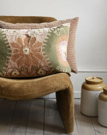 De Cushion Cover Velvet Old Rose van Madam Stoltz is een luxueuze kussenhoes met een rijke, warme uitstraling. Het zachte fluweel in oudroze tint brengt direct sfeer en elegantie in huis. De hoes is met zorg gemaakt in India en toont de blijvende kunst van Suzani-borduurwerk, wat elk stuk uniek maakt. Perfect om een bank, stoel of bed een verfijnde en knusse touch te geven.
