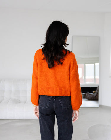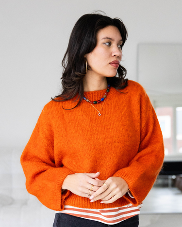 De Pull Nevra in Citrouille is een warme, oranje trui die direct een vrolijke touch aan je outfit geeft. Gemaakt met wol, voelt hij heerlijk zacht aan en houdt je lekker warm op koude dagen. Het tijdloze ontwerp en de levendige kleur maken deze trui perfect voor zowel casual als iets gekledere winterlooks. Combineer hem met een jeans en stoere laarsjes voor een casual look, of draag hem over een rok met enkellaarsjes voor een speelse winteroutfit.