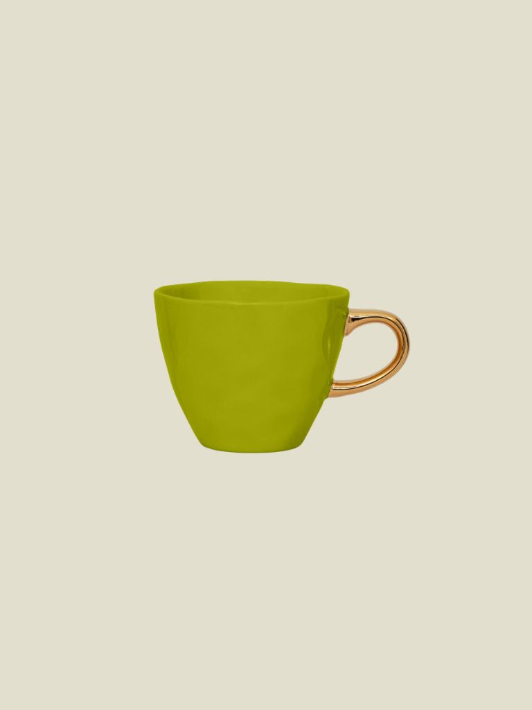 Deze split pea groene Goodmorning Coffee Cup van Urban Nature Culture voegt een gouden randje toe aan elke ochtend.