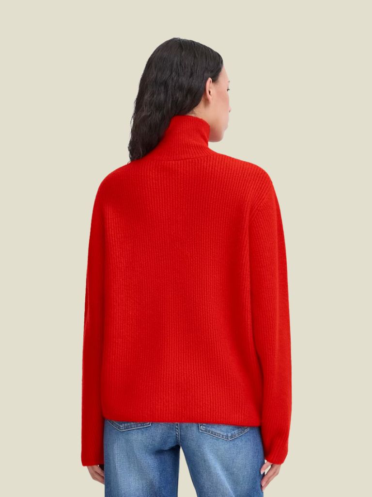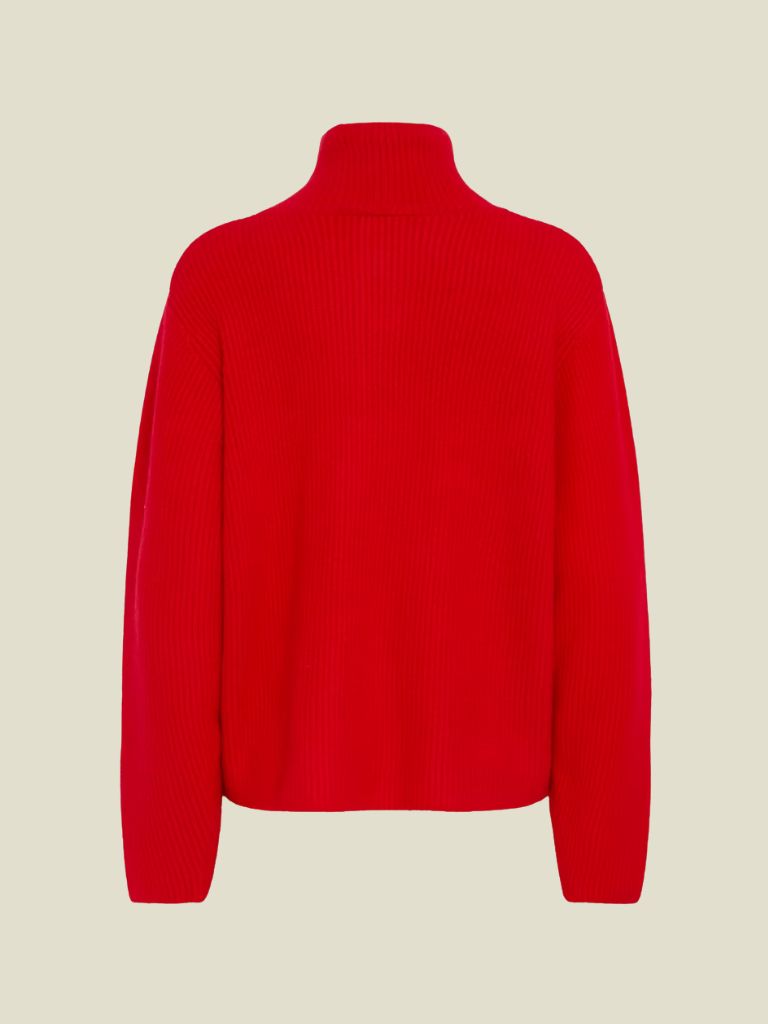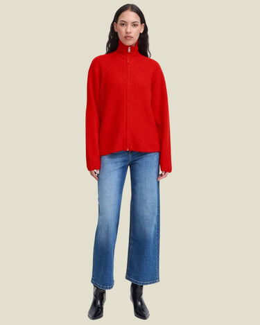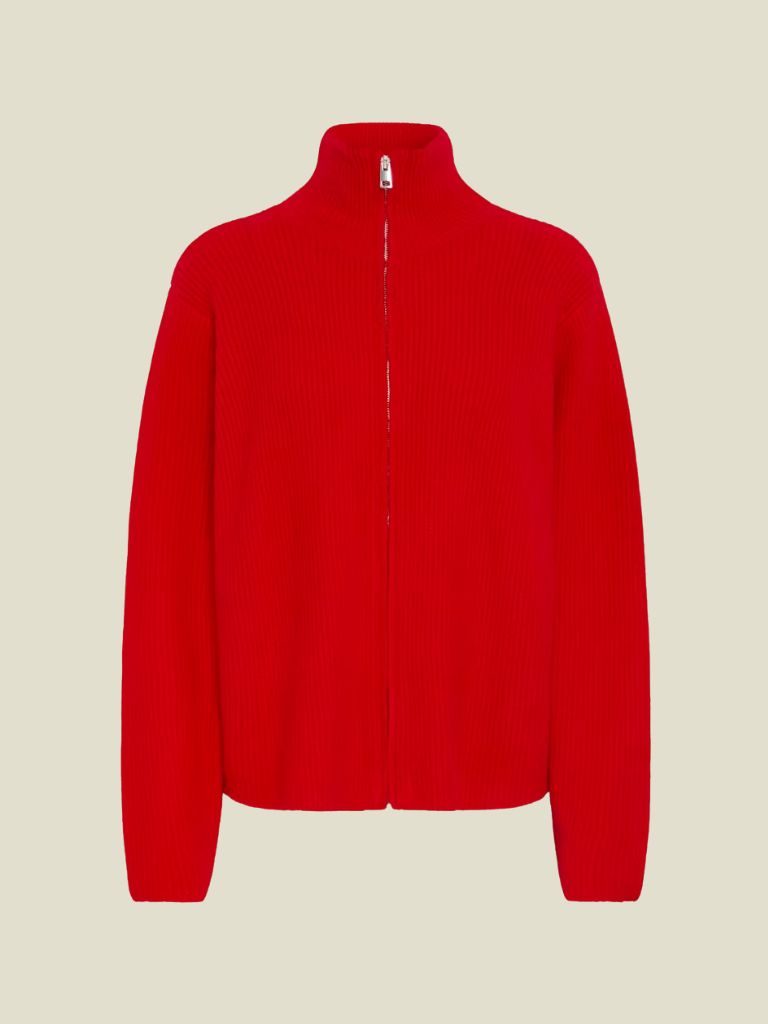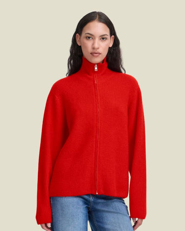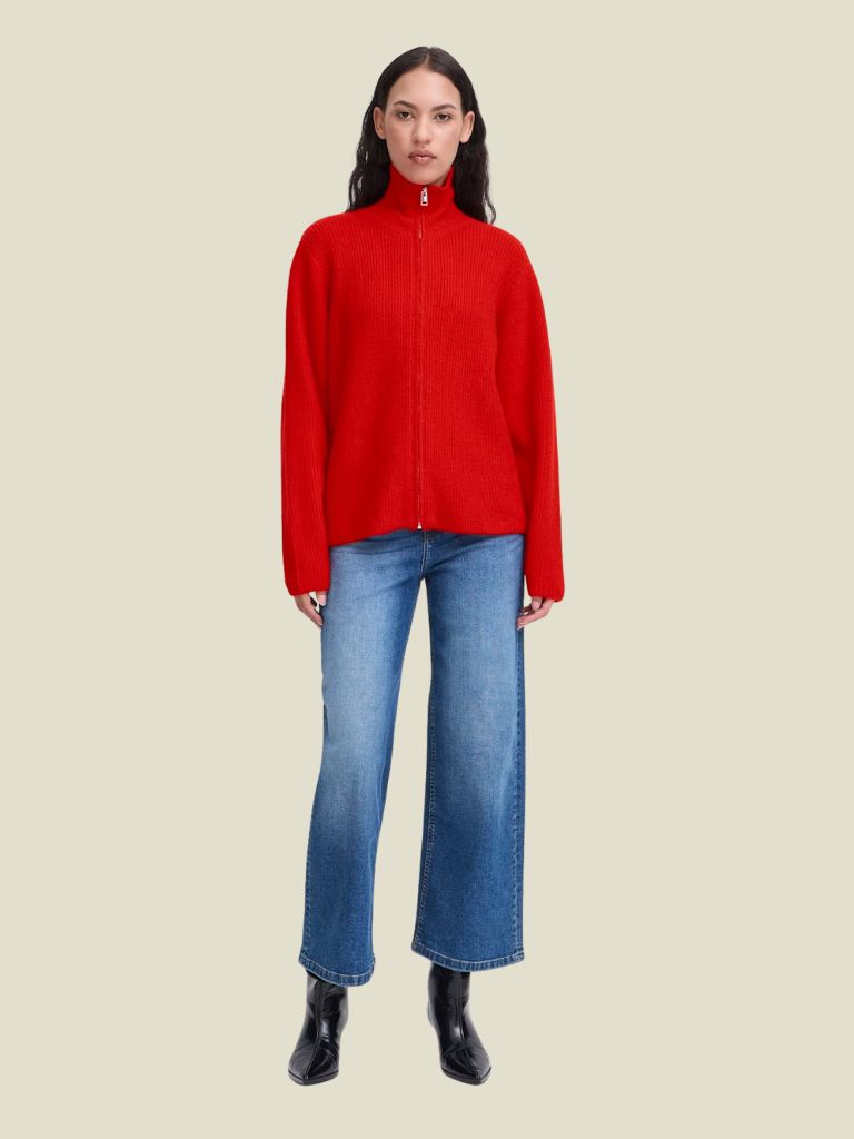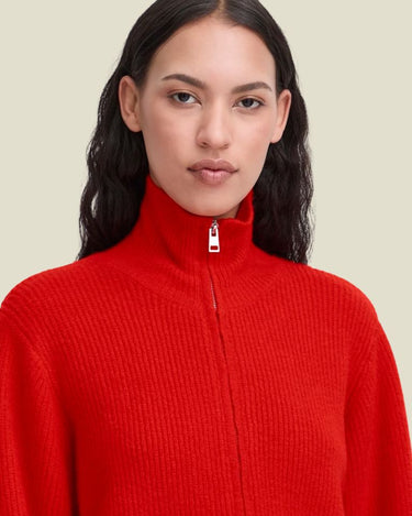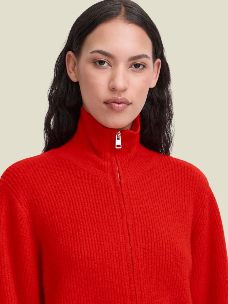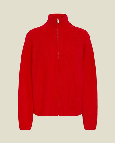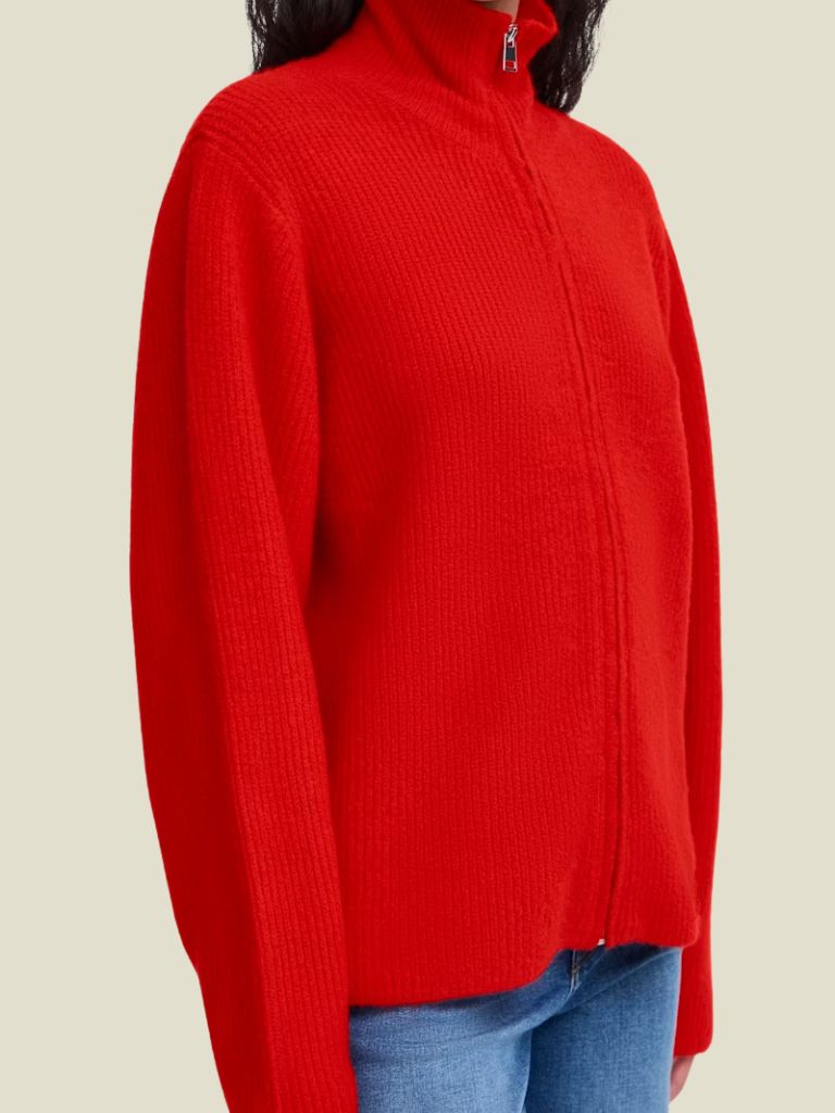 Cardigan in mooie rode kleur met ritssluiting van ICHI.