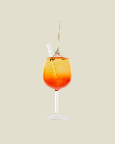 Prachtig glazen kerstornament in de vorm van aperol spritz glas.