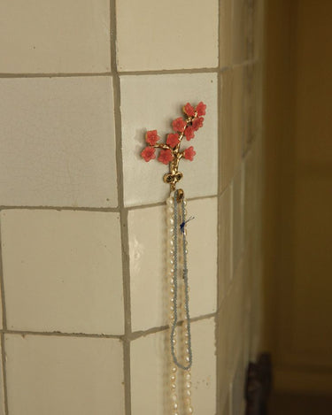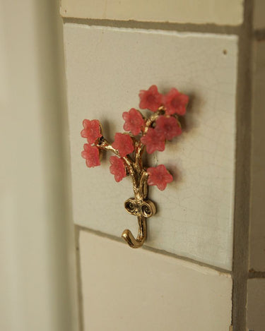 Een haak met roze bloemen om je theedoeken, sieraden of tasjes aan te hangen. Dit is Elodie Flower van Doing Goods.