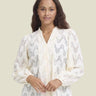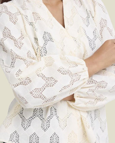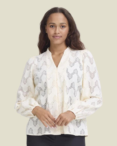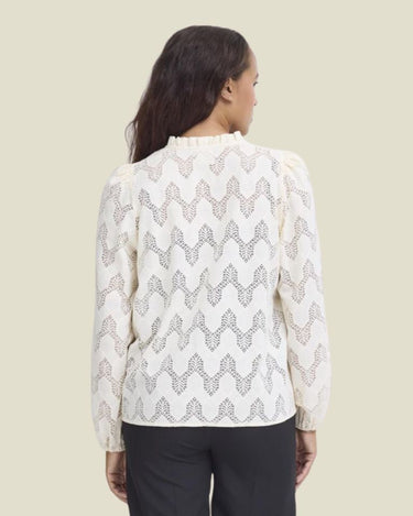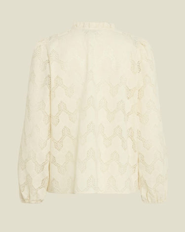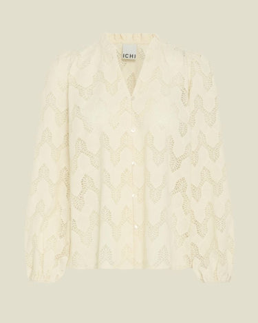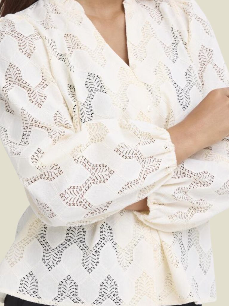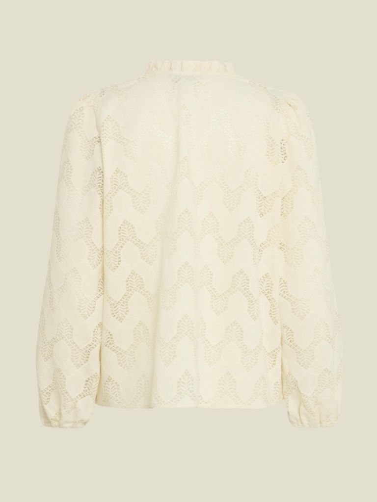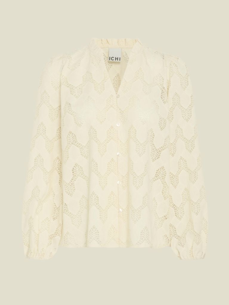 Kanten blouse van Ichi met mooie details zoals de kraag en de lichte pofmouwen van boven en onder.