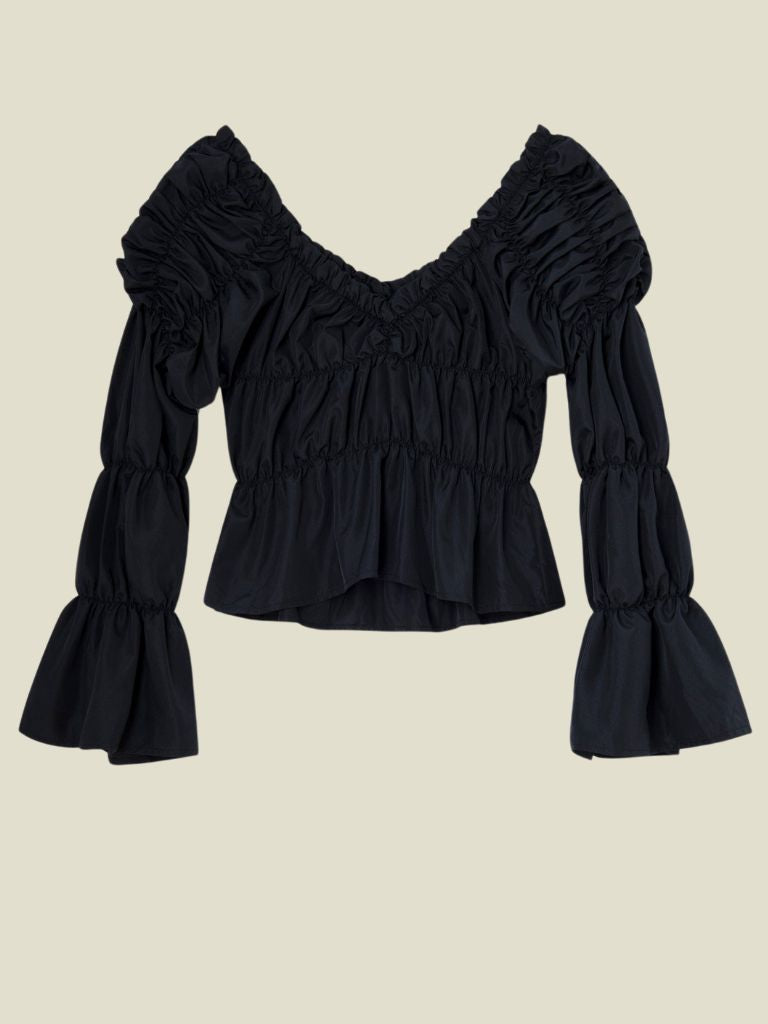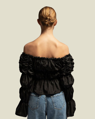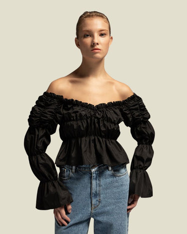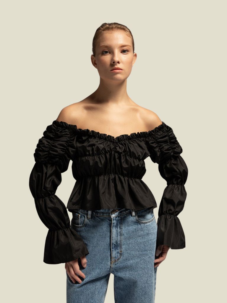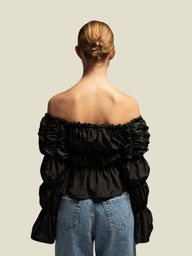 Blouse met ruches van Lagaam, gemaakt van polyester. Draag het off-shoulder of normale positie.