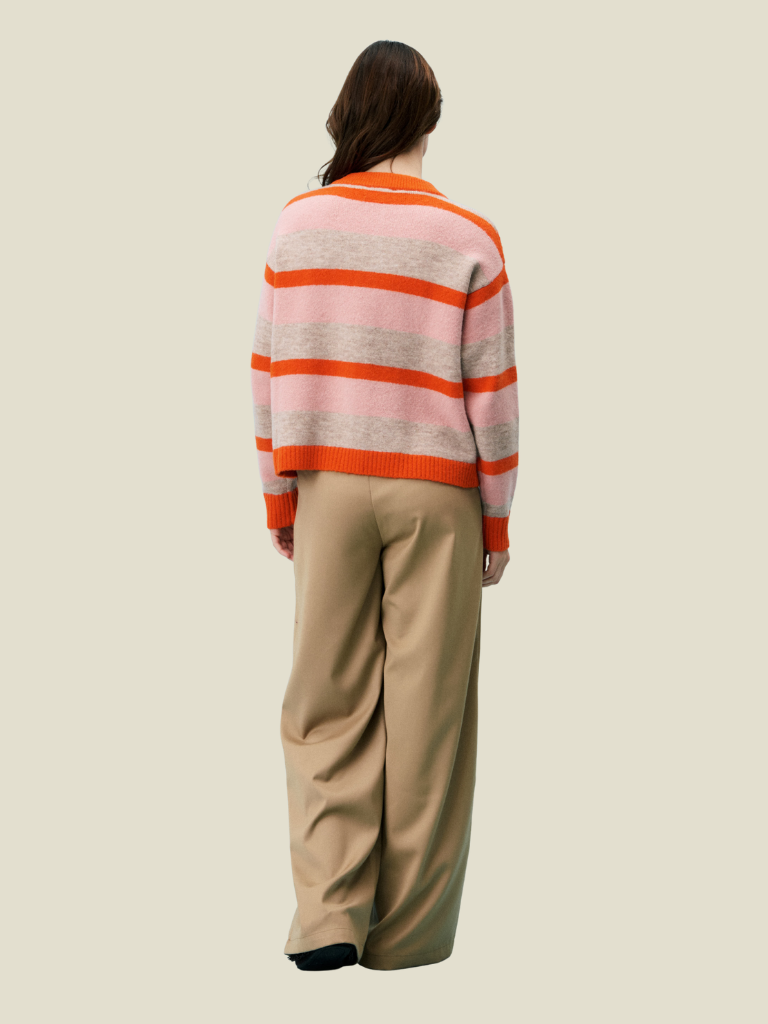 Vrolijke streep in rood, roze en beige – eye-catcher gegarandeerd