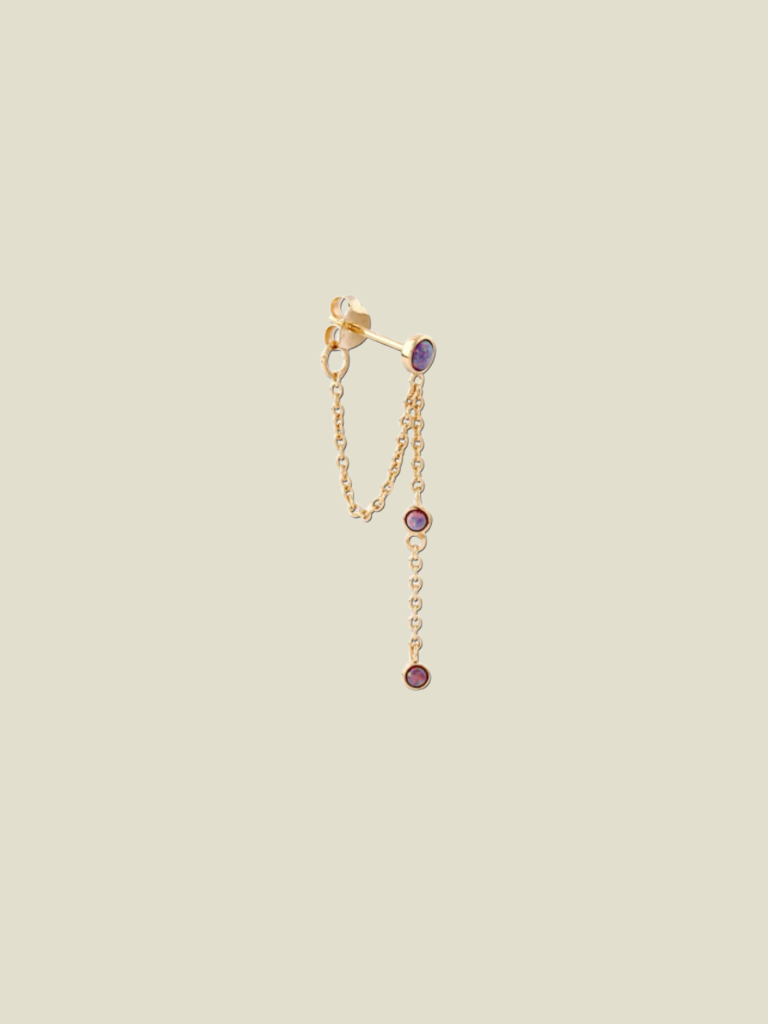 De Earring Purple Rain Chain Gold van Xzota is een verfijnde eyecatcher met een speelse, vrouwelijke uitstraling. De combinatie van een fijne gouden chain en paarse details geeft deze oorbel een elegante, moderne look — perfect om je outfit net dat beetje extra te geven. Mooi om solo te dragen, maar ook ideaal om te combineren in een trendy earparty.