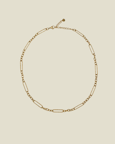 De Necklace Chaines Ovals Gold is een verfijnde gouden ketting met ovale schakels die een elegante en subtiele uitstraling geeft. Perfect om te combineren met bedels of met meerdere kettingen voor een gelaagde look, waardoor je makkelijk je eigen stijl creëert.