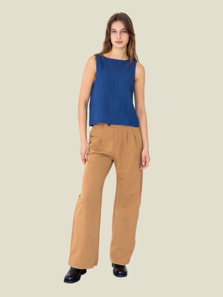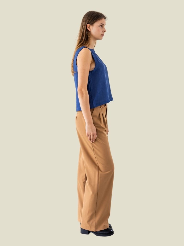 Geplooide pantalon gemaakt van o.a. polyester, blijft mooi van kleur en is vormvast.
