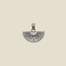 Een opvallende hanger in de vorm van een waaier, uitgevoerd in zilver. Het speelse maar elegante ontwerp geeft elke ketting een moderne, artistieke uitstraling. Perfect om solo te dragen als statement piece of te combineren voor een gelaagde look met karakter.