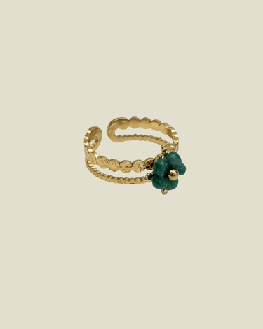 De Ring Green Flower Gold is een verfijnd en speels sieraad met een subtiel groen bloemetje. Gemaakt van stainless steel, behoudt hij zijn glans en is hij duurzaam in gebruik. Dankzij het verstelbare ontwerp past de ring comfortabel aan vrijwel elke vinger.