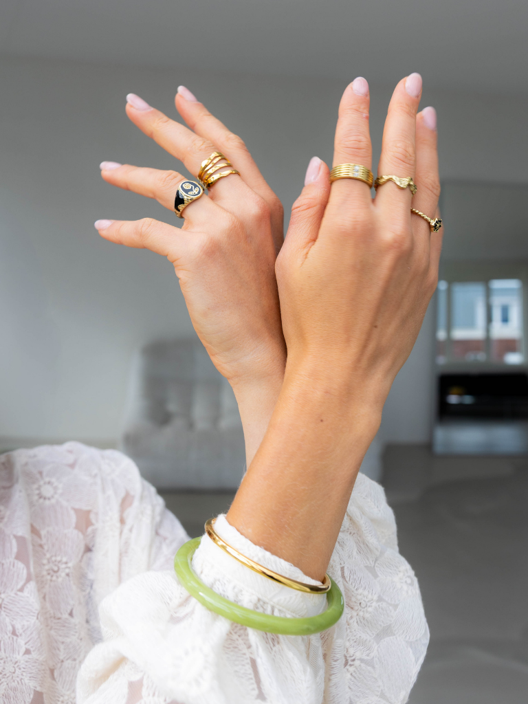 Chunky ring met abstracte vormen van Xzota. Deze ring heeft speelse, organische vormen die je look direct een modern tintje geven.
