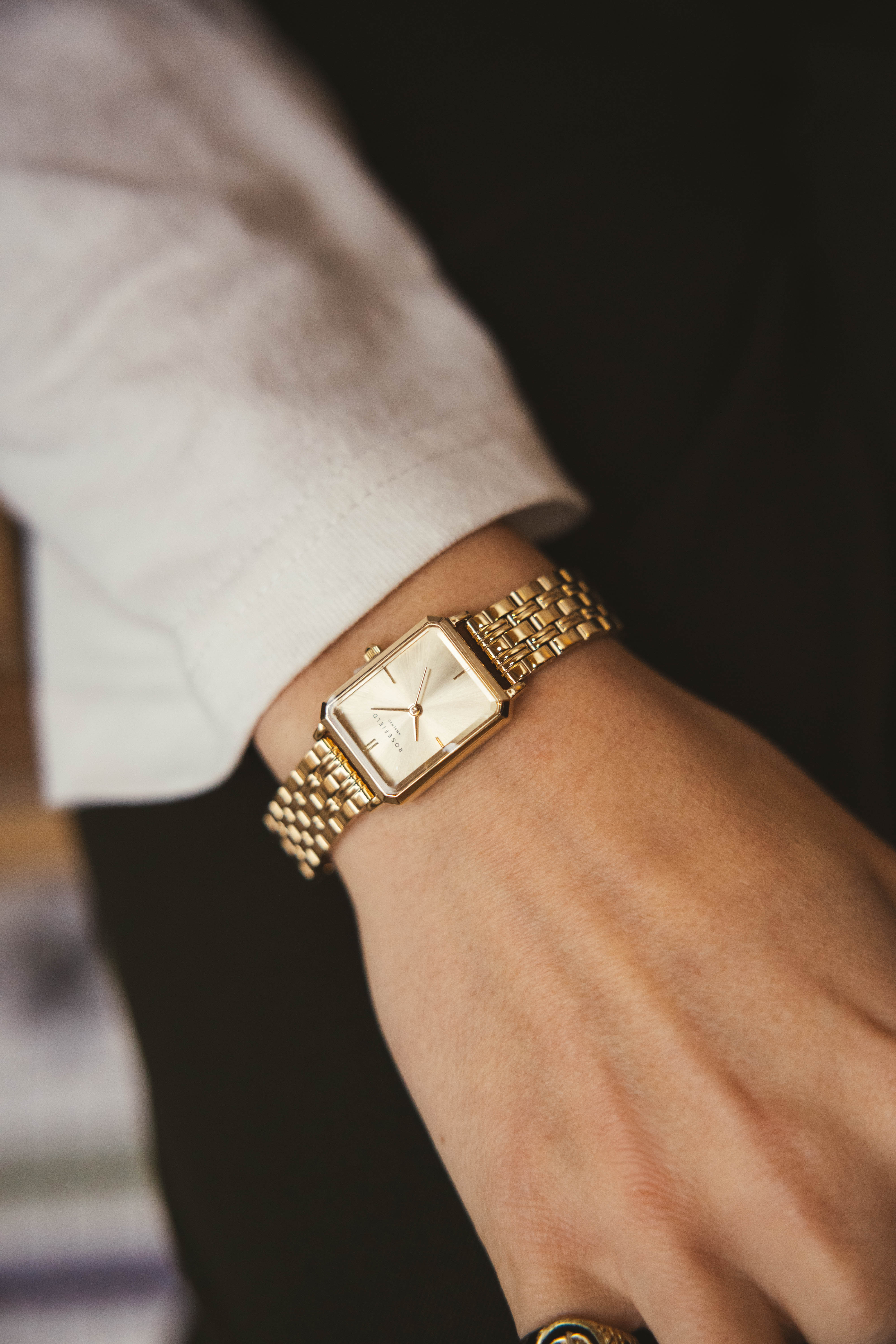 De elegante Boxy XS horloge van Rosefield met klassieke elementen.
